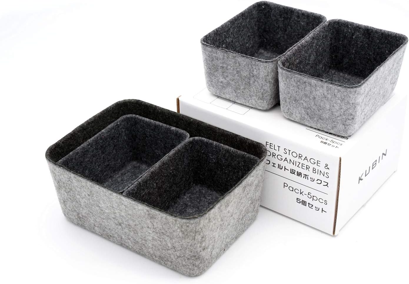 Welaxy office Drawer organizers bins Deep draw organiser Felt storage bin drawers Desk draw dividers boxes for toys makeup jewelery rolled ties organizing 5 pack (Charcoal)