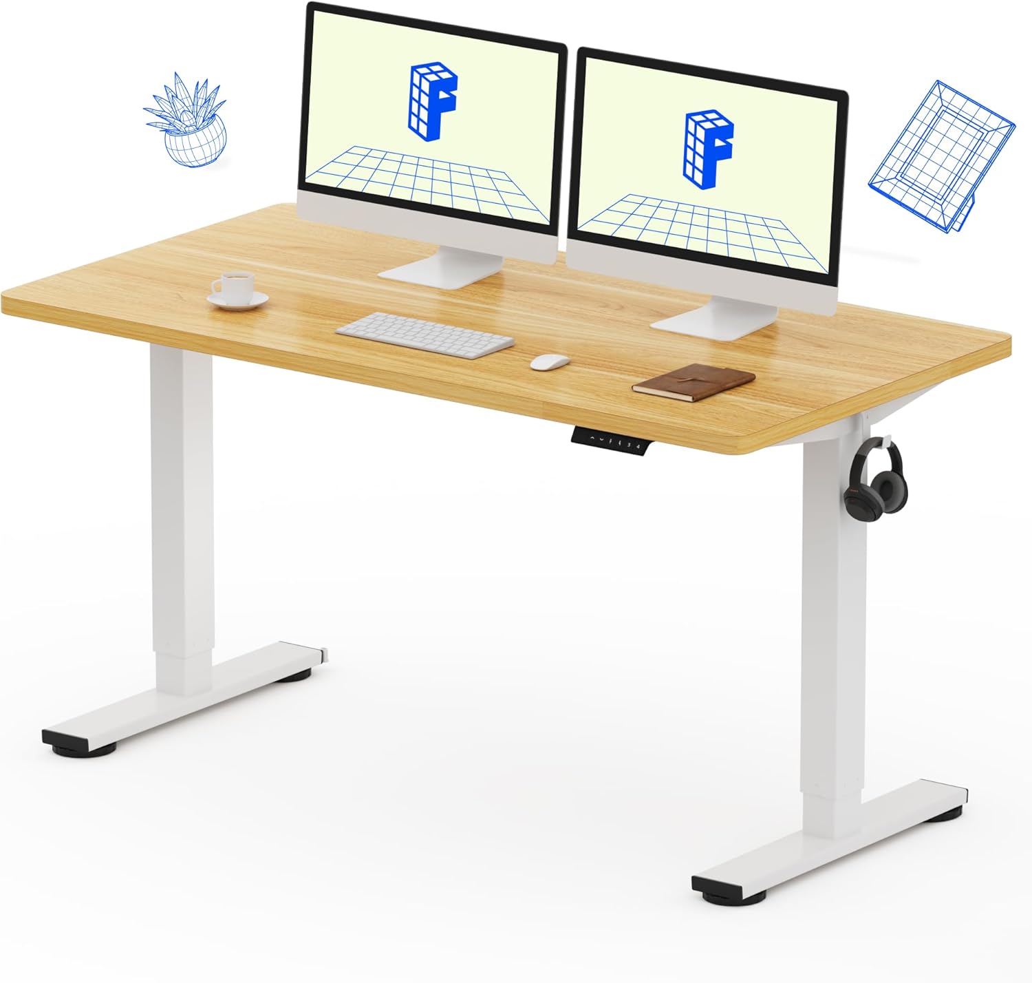 FLEXISPOT EN1 One-Piece Standing Desk 55 x 28 Inch Electric Adjustable Height Desk for Home Office and Computer Workstation (White Frame + 55" Maple Top, 2 Packages)