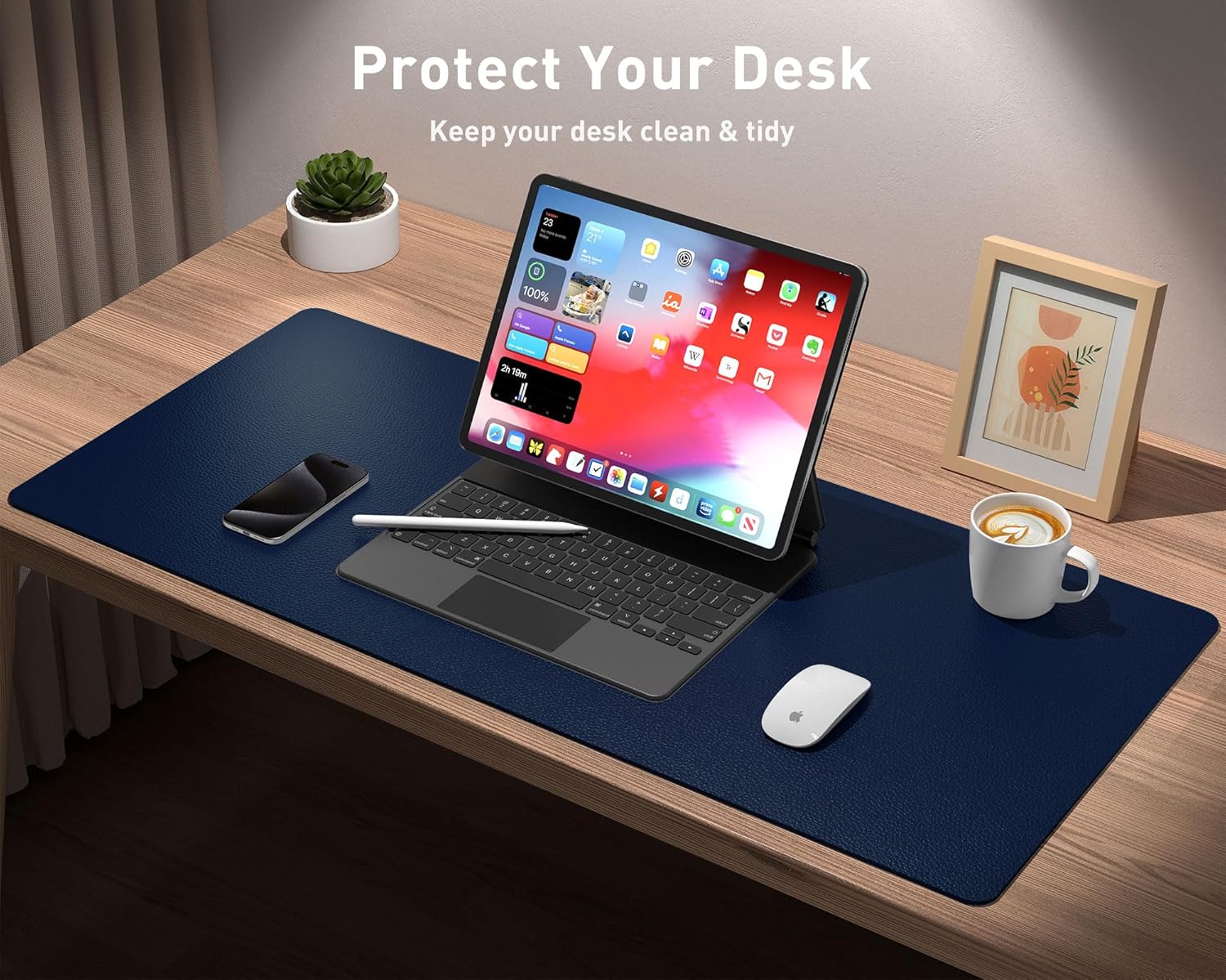 Aothia Leather Desk Pad Protector, Mouse Pad, Office Desk Mat, Non-Slip PU Leather Desk Blotter, Laptop Desk Pad, Waterproof Desk Writing Pad for Office and Home(Dark Blue,31.5" x 15.7")