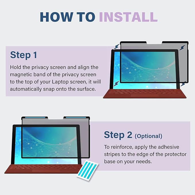 - 【Automatic Snap-on Magnetic Attachment】Simply place the privacy screen along the top of your Microsoft Surface Pro and let the magnets attach along the screen. No more adhesive. Easily remove and reattach when you need it.