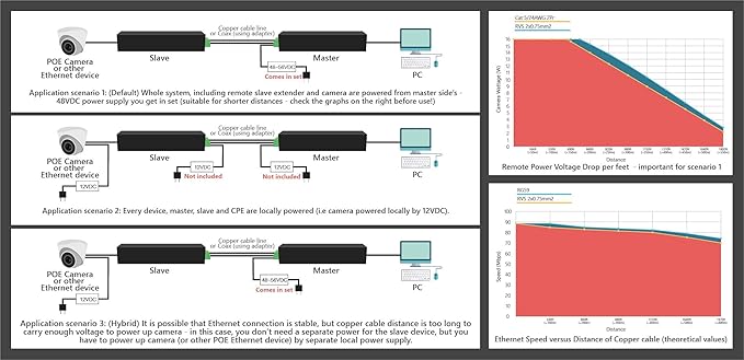 - In case of 48VDC local power supply option (48VDC power supply comes in set with) – a remote device & even CPE device such as camera will be powered over the same cable pair.;