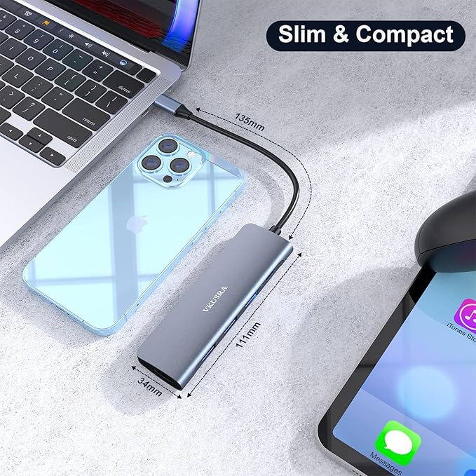 USB C Hub Multiport Adapter, VKUSRA 5 in 1 Dongle USB C to 4K HDMI, 3 USB 3.0 Port, 100W PD, USBC Adapter for MacBook, XPS, Laptop, PC, and More Type C Devices