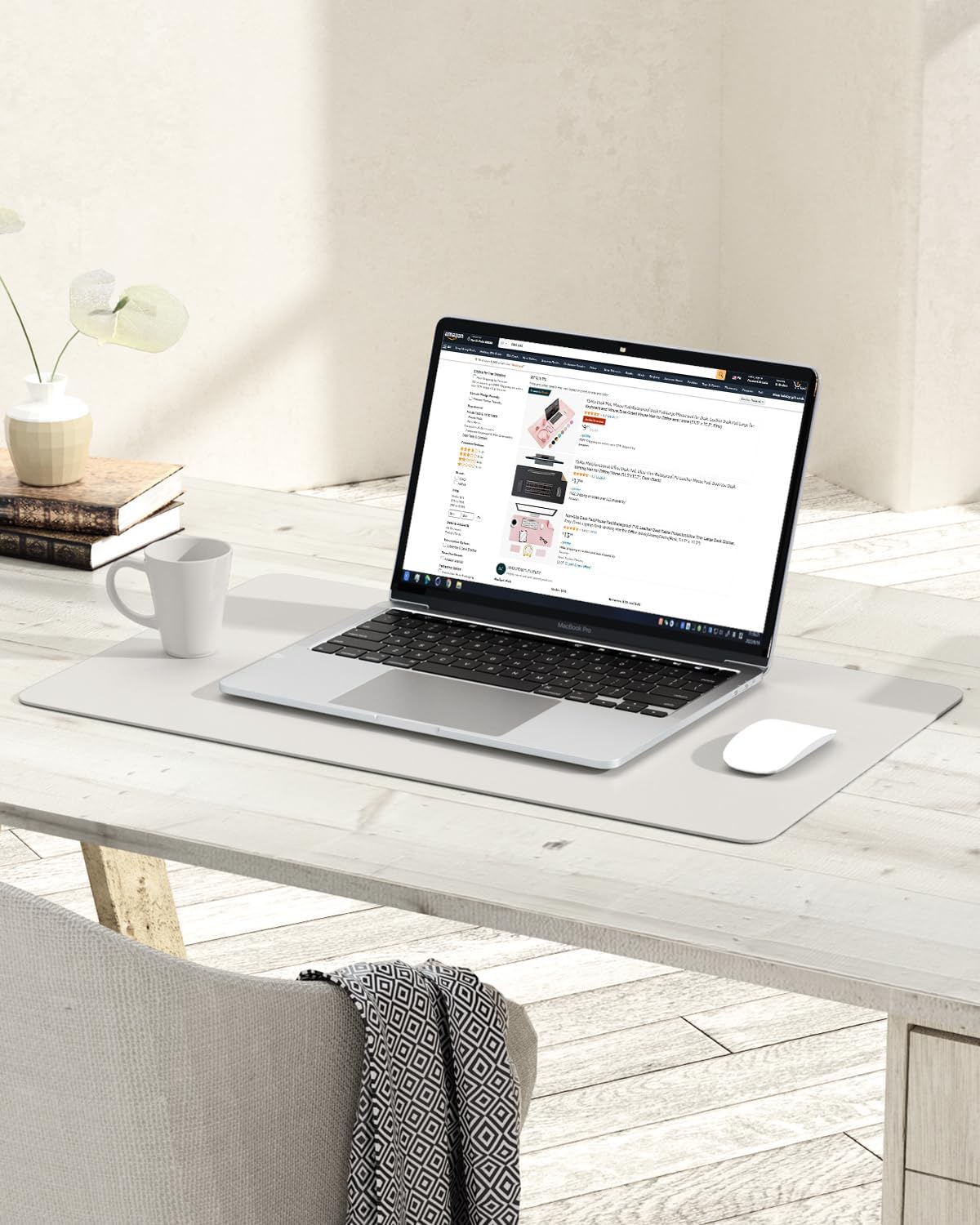 YSAGi Non-Slip Leather Desk Pad, Waterproof Laptop Computer Desk Keyboard Mat, Table Protector Blotter Mat, Large Mouse Pad for Office/Work/Home/Decor(Apricot Gray, 23.6" x 13.7")