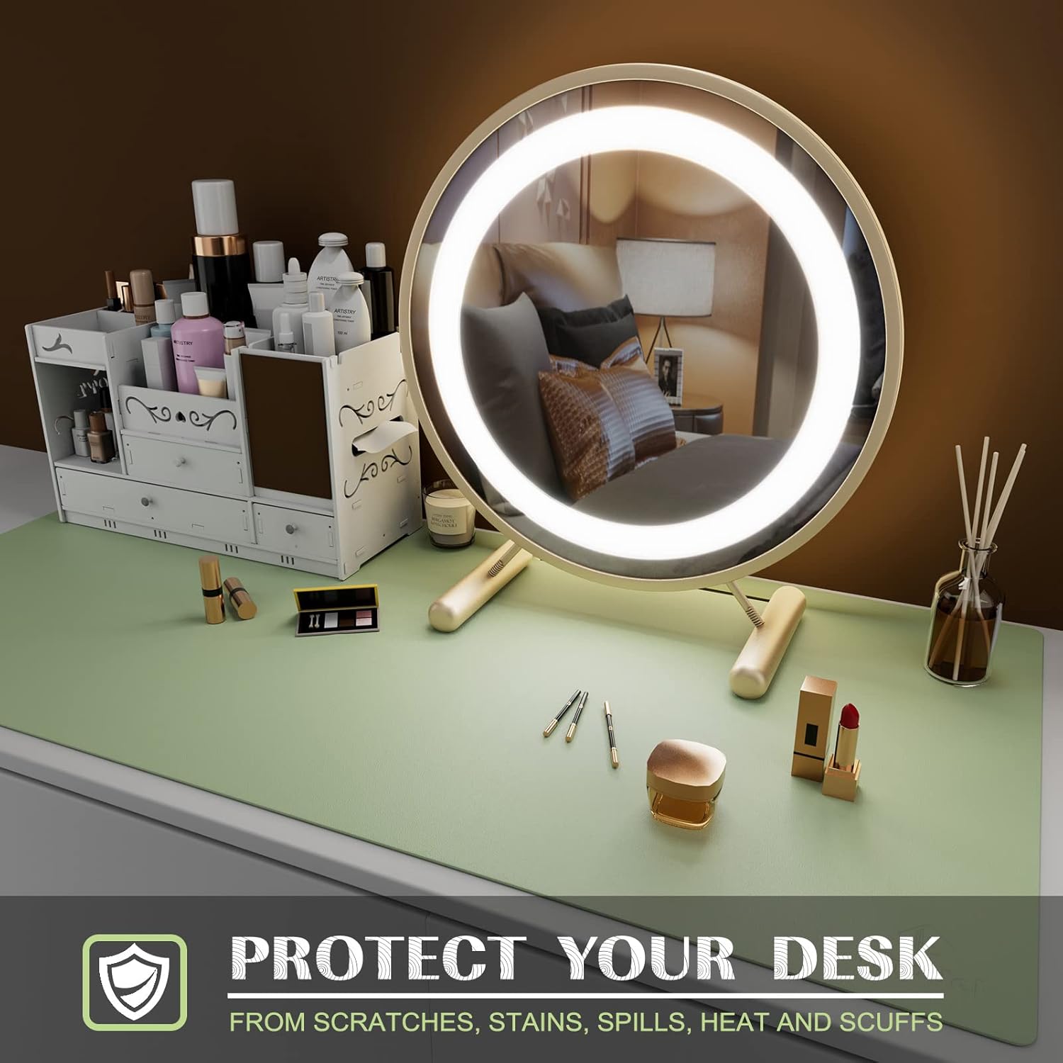 K KNODEL Small Office Leather Desk Mat, Mouse and Keyboard Pad, Computer and Laptop Mat, Desktop Protector and Cover, Writing Pad and Blotter (23.6"x13.8", Light Green)