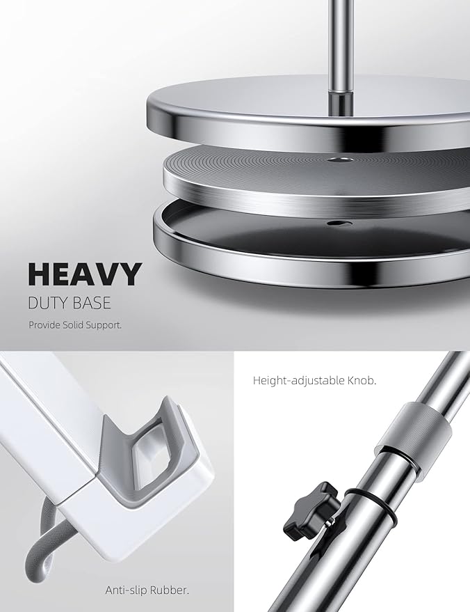 - 【Strong Stability】Heavy duty base makes the stand more stable and reliable. Made by premium solid aluminum alloy, the gooseneck arm and extension tube are more durable than usual. Lamicall tablet floor stand provides safe and secure support for your device.
