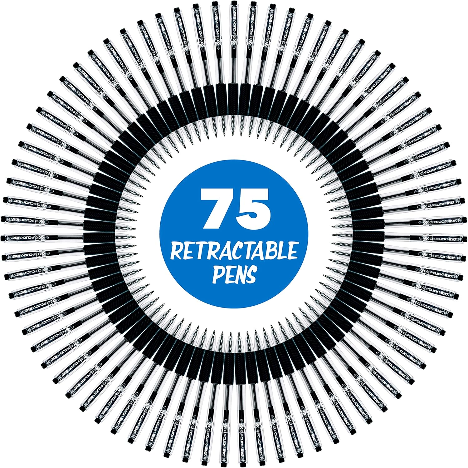 Inc. ClipClicks Retractable Ballpoint Pens - Bulk 1.0-mm Medium-Point Pen Set With Comfort Grip for School, Office, Writing, and Journaling, 75 Count, Black
