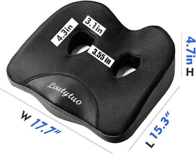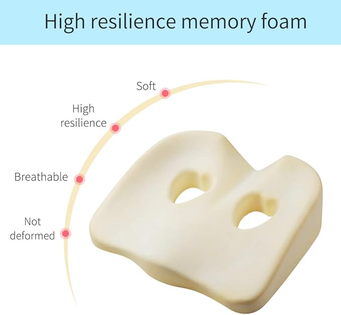 - Ergonomical Design: The tailbone cut-out with 2 hollow holes(4.3*3.1 inches) and ergonomic contours, helps you maintain better posture. (WARNING: the soft support may alleviate the impact of gravity on the spine, but cannot replace medical instrument)