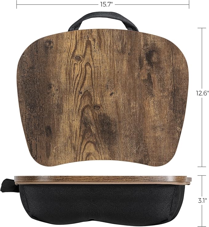 SONGMICS Lap Desk, Bed Tray, Laptop Table with Handle, Cushion, 12.6 x 15.7 x 3.1 Inches, Rustic Brown ULLD109B01