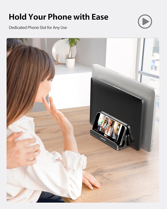 - Space-Saving: This dual laptop stand allows you to store your devices vertically, freeing up valuable desk space. It's a perfect desktop laptop stand for creating a clutter-free workspace, thus boosting productivity.