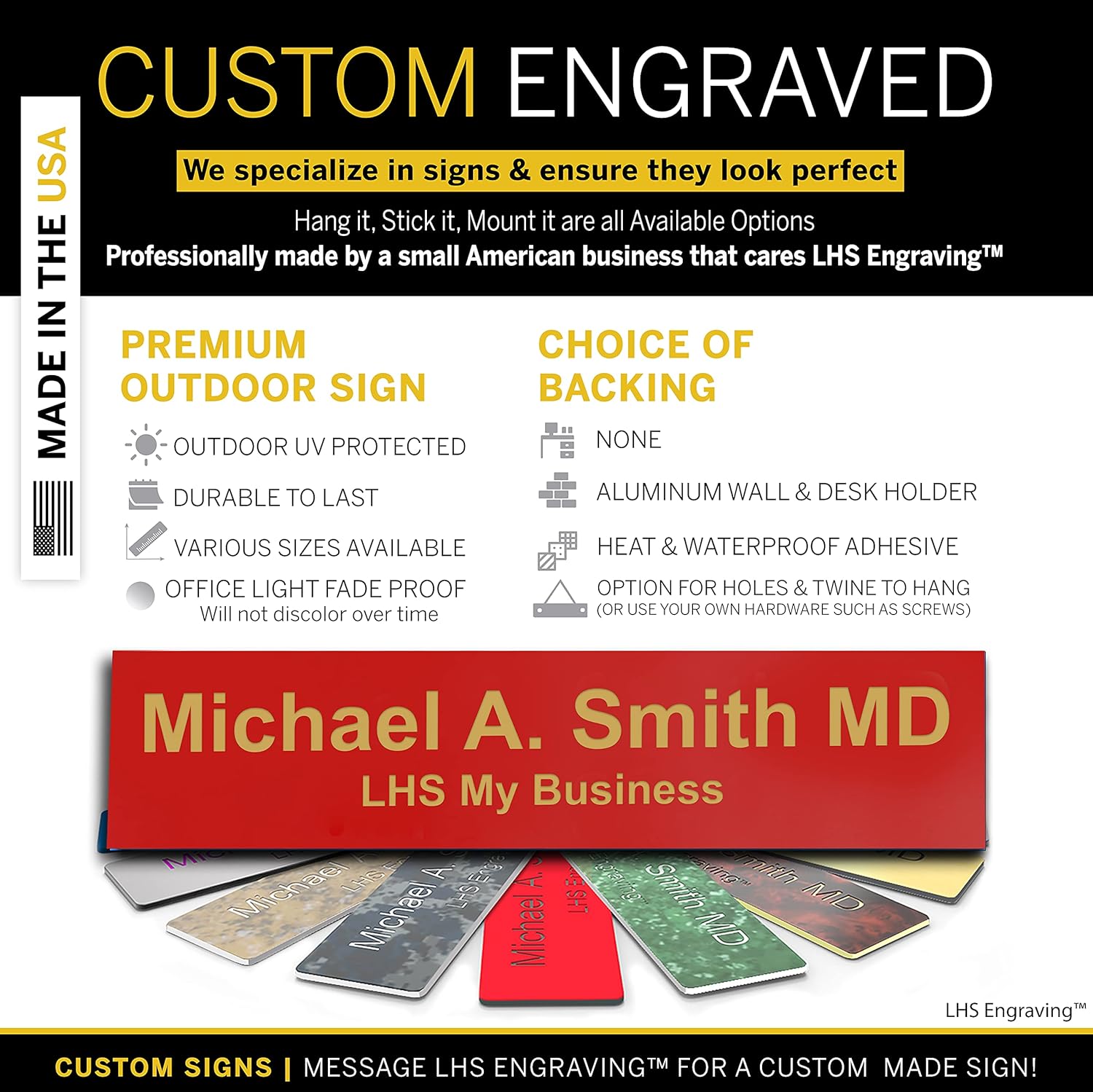 Engraved Name Plates for Door Sign Personalized Red Plastic Plaque with Gold Letters - Made in USA 2x8 B17
