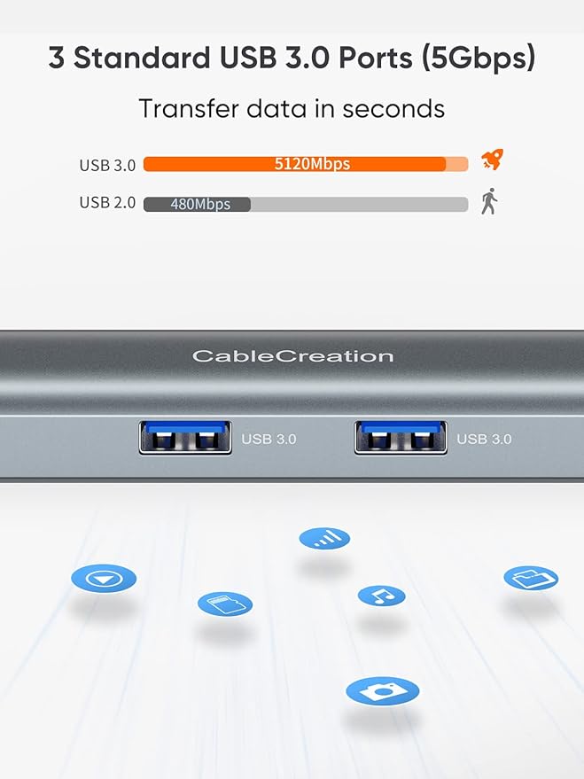 - 5Gbps USB 3.0 Port - Speedy Sync: 3 standard USB 3.0 ports, each with data transfer rates of up to 5 Gbps. You can connect multiple USB peripheral. Easily transfer large files in seconds