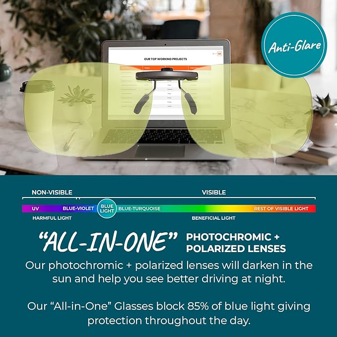 - Improve Sleep Quality Naturally – Photometric lenses filter up to 85% of disruptive blue light (~400–500 nm) to support melatonin and circadian rhythm.