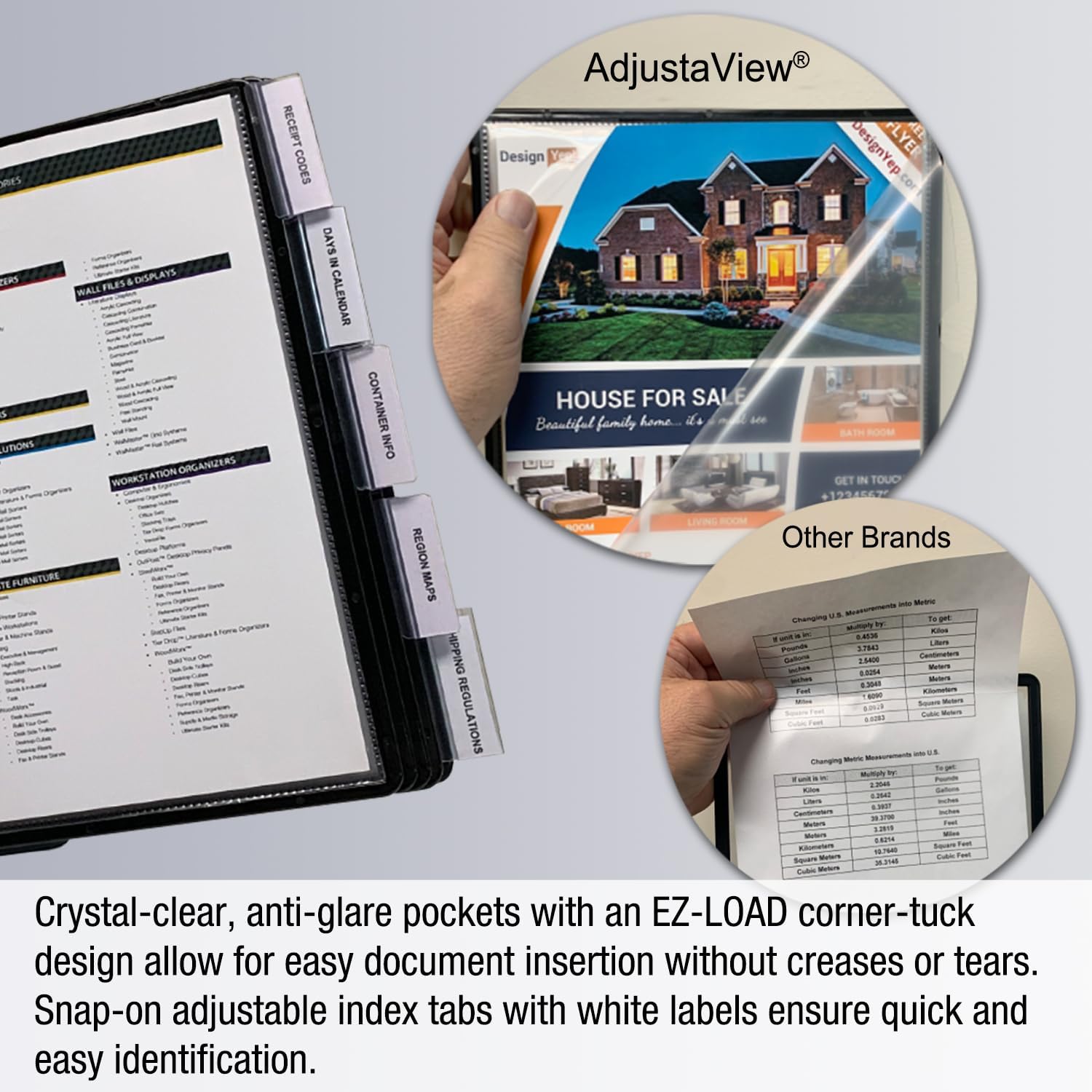 Ultimate Office AdjustaView 10-Pocket Desk Reference Organizer with Supplies Storage Base and EZ-LOAD Pockets to Hold 20 Sheets of Paper, Includes Fast Find Indexing Tabs, Black Pockets