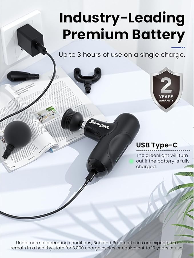 - 15W PD Fast Charging & Whisper-Quiet Operation: The Q2 Mini Massage Gun can be fully charged in just 1.5-2 hours using a fast charger (not included). The multifunctional USB Type-C port allows for charging with either A-C or C-C cables, making it compatible with any adapter or power bank for convenient fast charging. Whisper-quiet, it operates as low as 40 decibels, perfect for use at home, the gym, or the office without disturbing others.