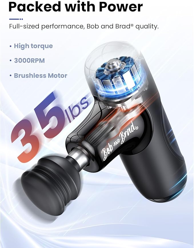 BOB AND BRAD Q2 Mini Massage Gun, Pocket-Sized Deep Tissue Massager Gun, Portable Percussion Muscle Massager Gun, Ultra Small & Quiet Muscle Massage Gun with Carry Case, Home Gym Travel, Black