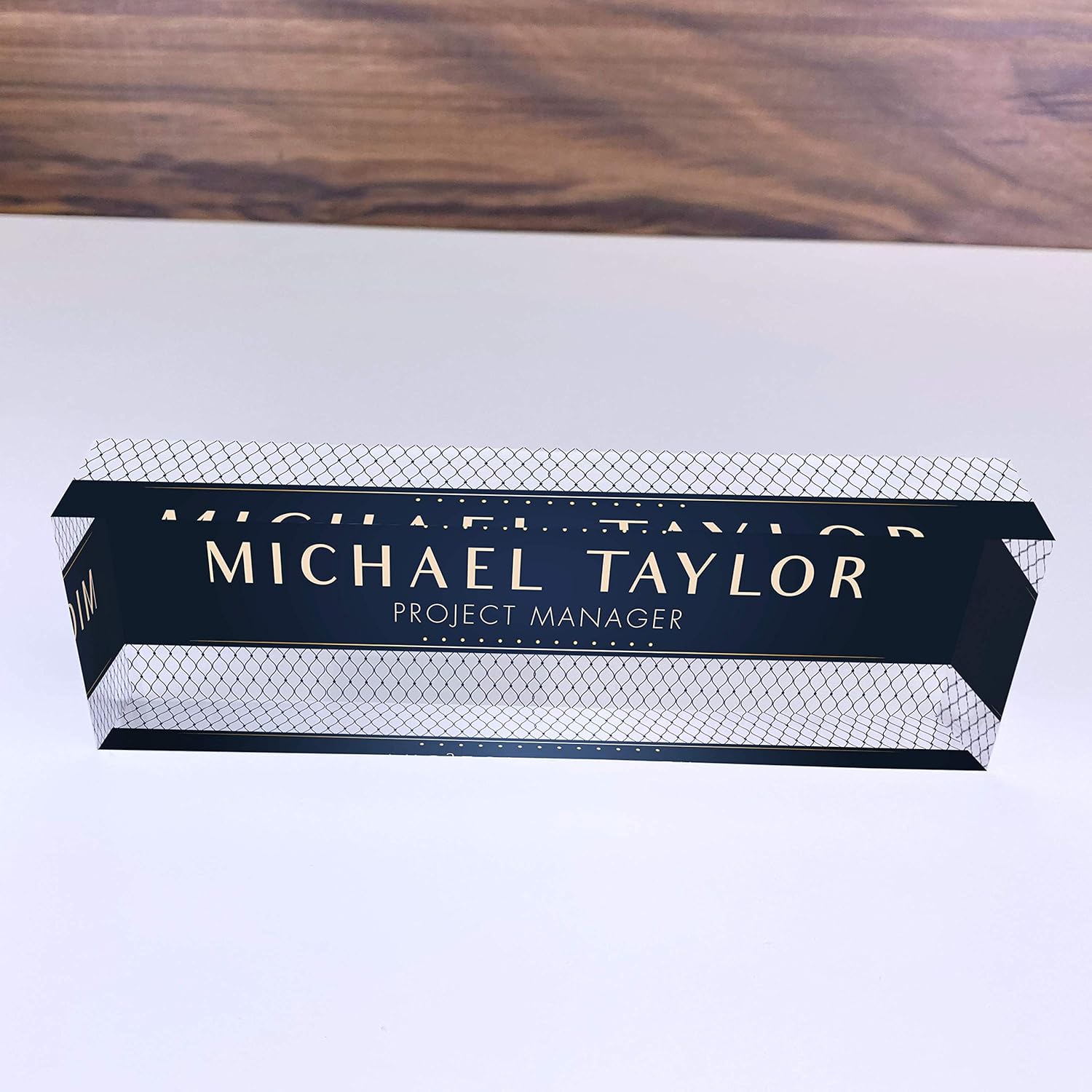 Artblox Office Desk Name Plate Personalized | Custom Name Plates for Desks | Net Shape Design On Clear Acrylic Glass | Office Desk Decor - (8" x 2.5")
