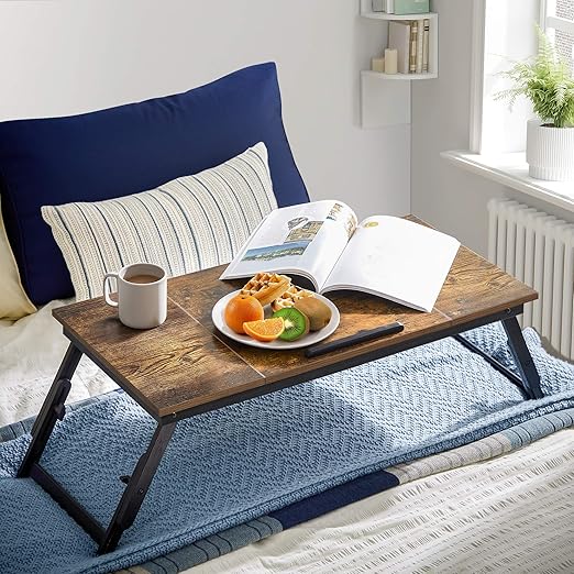 - [What You Get]: A foldable, adjustable laptop tray that boasts a timeless rustic dark brown colour, and just like its robust structure, accompanies you for a healthy lifestyle