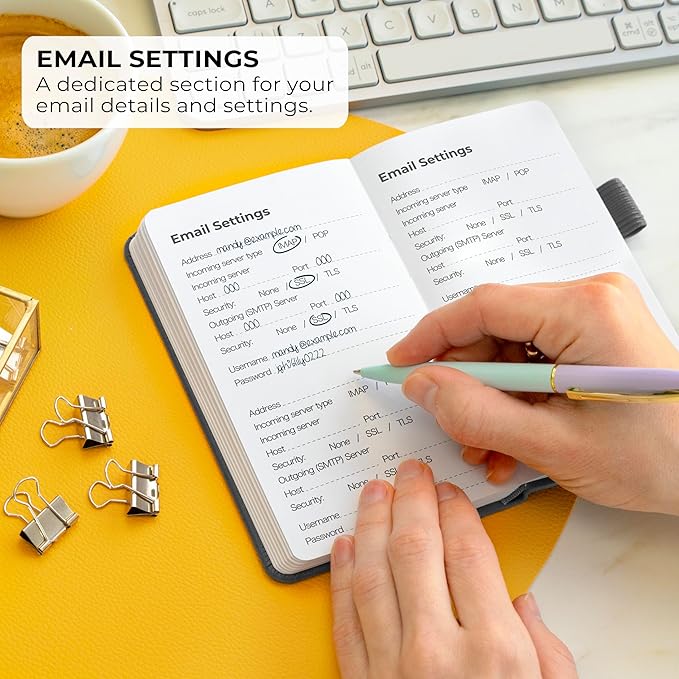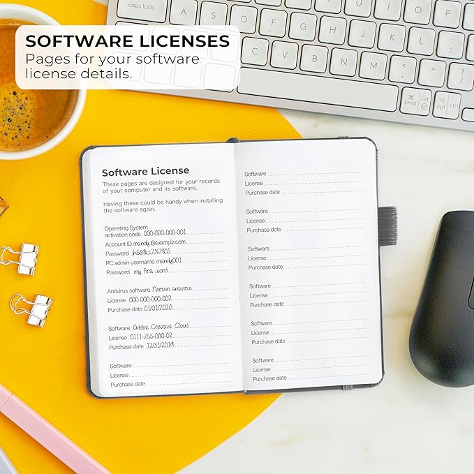- ELEGANT, SMART & PRACTICAL WAY TO STORE COMPUTER INFO – This password keeper allows you to store not only your passwords but also all other kinds of computer information, including wireless and email settings, as well as software license information.