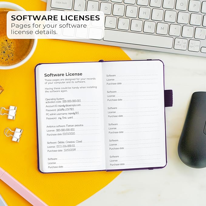 - ELEGANT, SMART & PRACTICAL WAY TO STORE COMPUTER INFO – This password keeper allows you to store not only your passwords but also all other kinds of computer information, including wireless and email settings, as well as software license information.