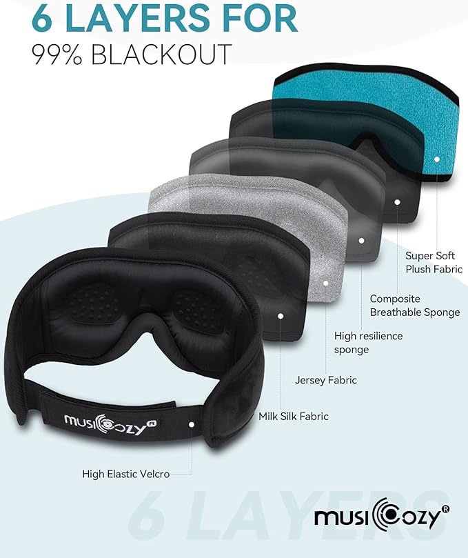 - Bluetooth Sleep Headphones with HD Stereo Sound - MUSICOZY 3D Sleep Headphones use Bluetooth technology to bring high-fidelity stereo with excellent sound quality. The extraordinary clarity provides you with a feast of excellent and comfortable sound. They can block ambient noise without the use of painful and falling sleep earplugs. You can listen to soft music without wearing additional headphones, so that you fall asleep faster without the risk of enlacing with the neck.