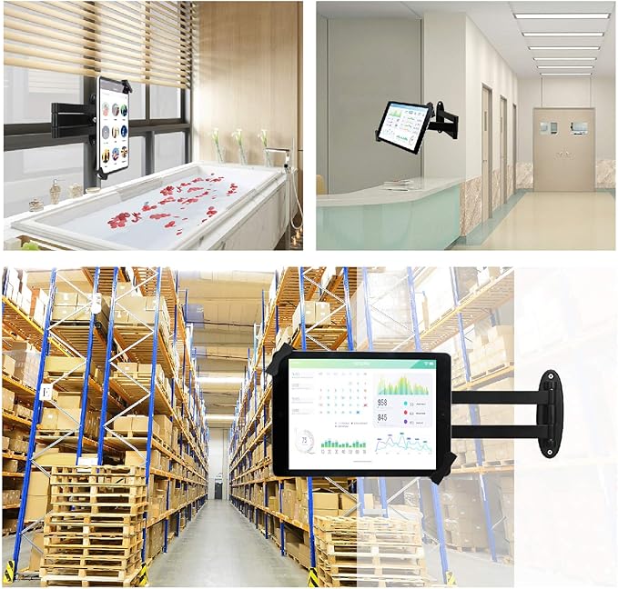 - Easy Mounting and Installation : tablet holder is easy to install on any wall and comes with mounting hardware included. Heavy-duty aluminum bracket and metal base ensure durability and wobble-free mounting of your device. Protective pad on the bracket cushion your device