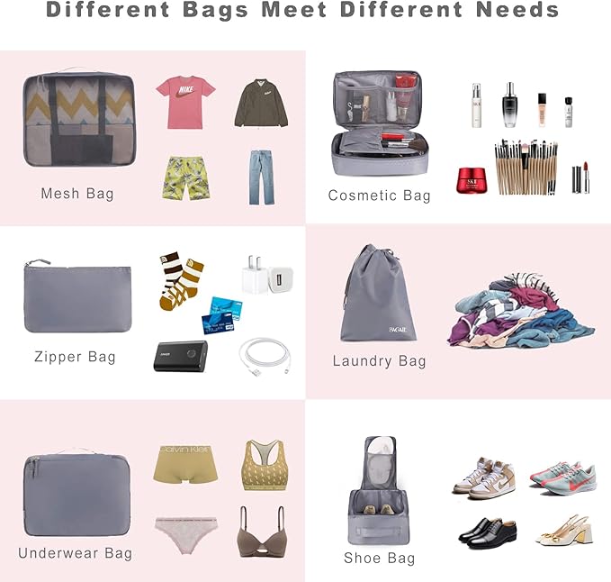 - Versatile and Multi Functional: Fit into different sizes of suitcase; Small size bag in the set can also fit airline carry-on bags, tote, weekender, backpack, duffel bag; Suitable for family breaks, business travel, vacation, hiking, camping, trip, etc