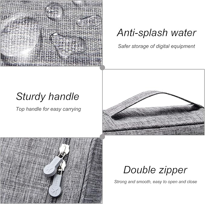- WATERPROOF & SHOCK RESISTANT: The cable travel organizer bag is made of waterproof cation 300D fabric, thick padded inner material offer excellent protection for your electronic accessories from scratches, dust and accidental dropping, all the things inside are protected very well.