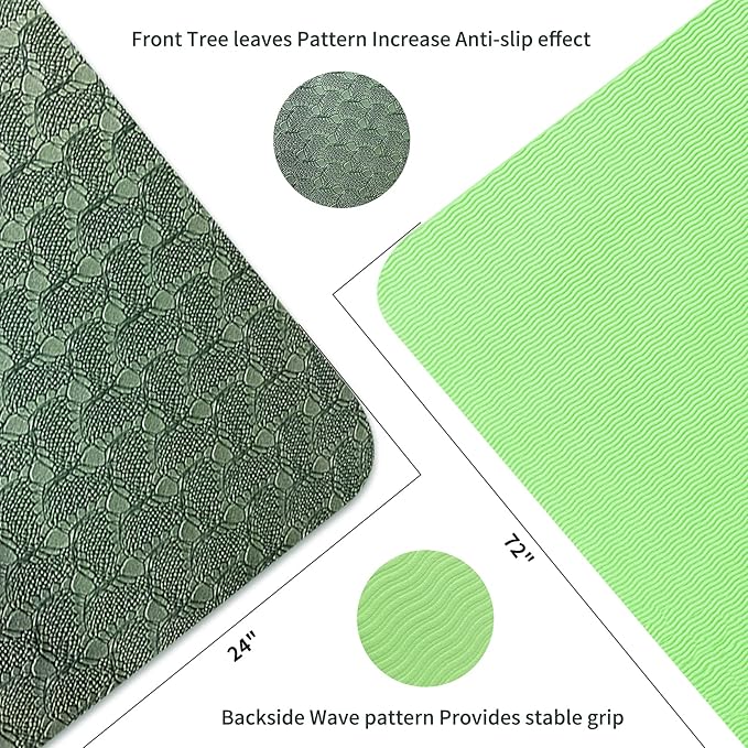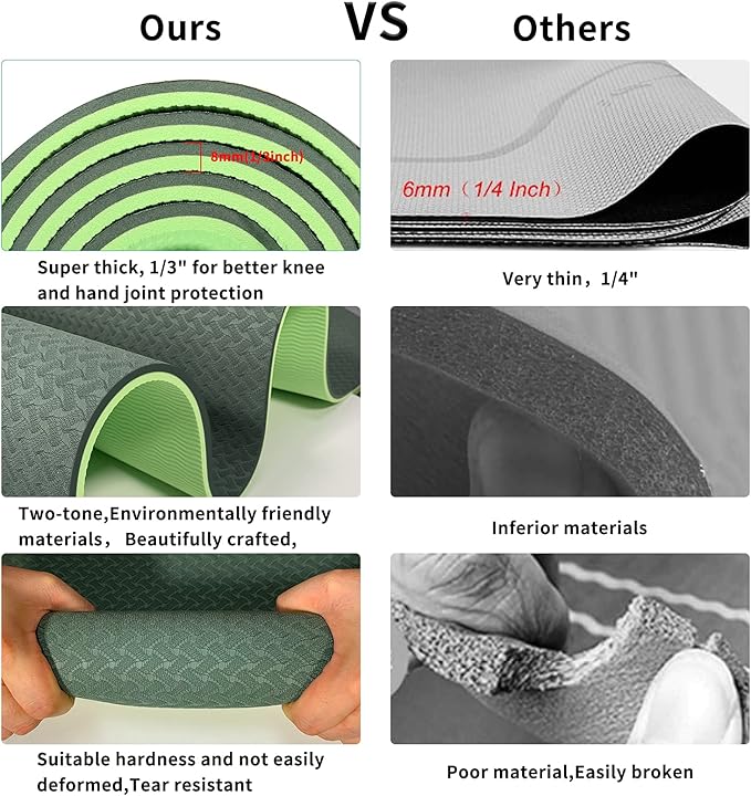 - 【8mm thickness, very suitable for yoga beginners】Size: 72inch x 24inch x 1/3inch, 8mm thickness is light and comfortable, excellent flexibility, 8mm thickness can provide the best level of cushioning and protection for the joints and knees, at the same time It still allows you to hold on to the floor to keep your balance. Protect the safety of yoga lovers.