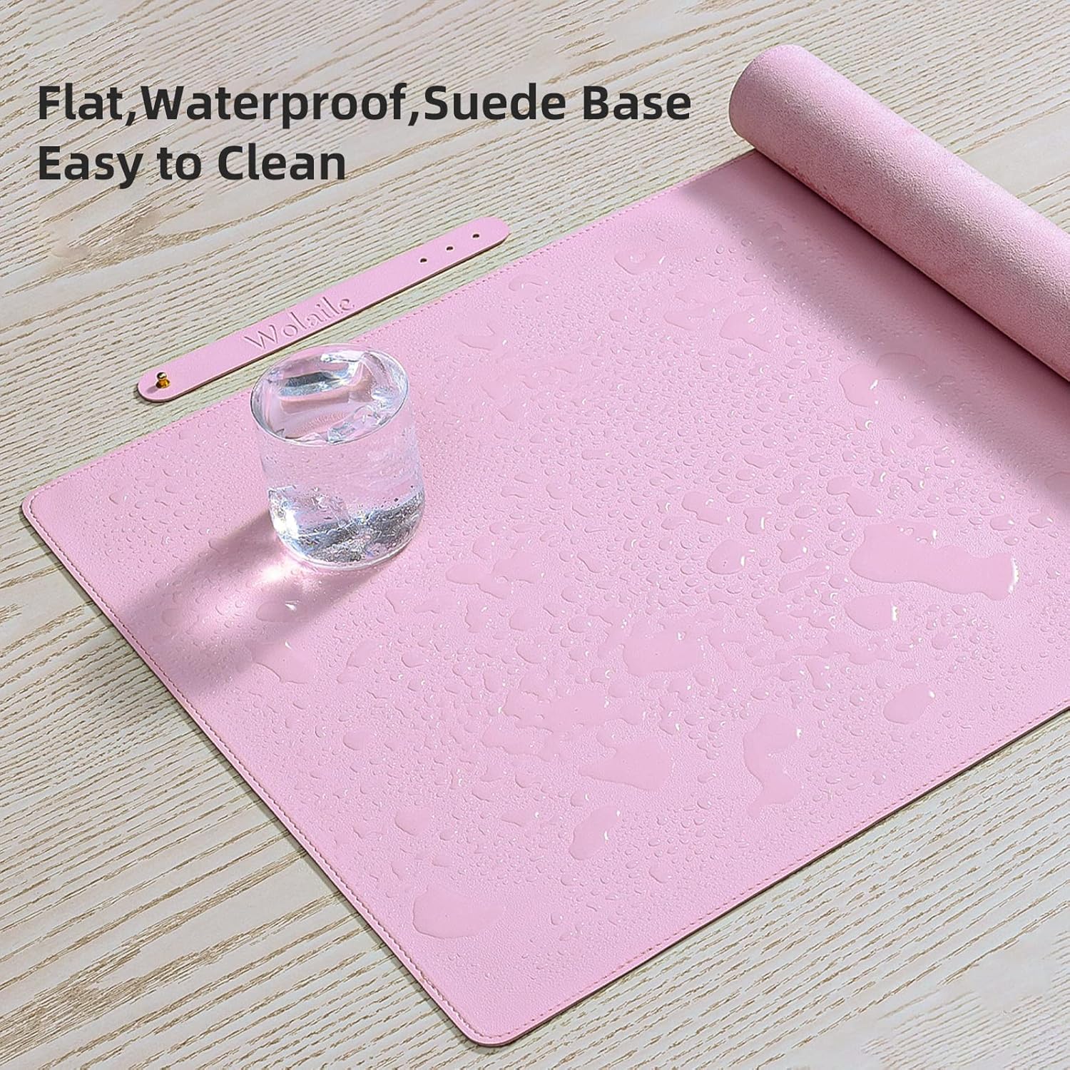 - Anti-slip base:The edges of our desk pads are stitched.The bottom is suede for extra grip and keeps the pad from slipping.Comes with a small strap,it can be used to roll up the mat or organize messy wires.