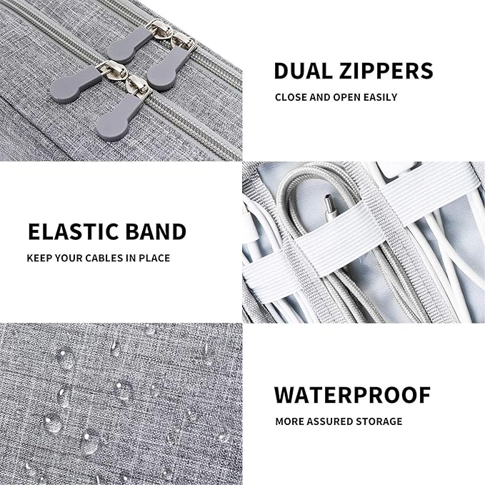 - 【PREMIUM MATERIAL】- The cable travel organizer bag is made of durable, and waterproof fabric. Well padded semi-flexible interior, excellent protection for your gadgets against scratches, dust, impacts, and accidental dropping.