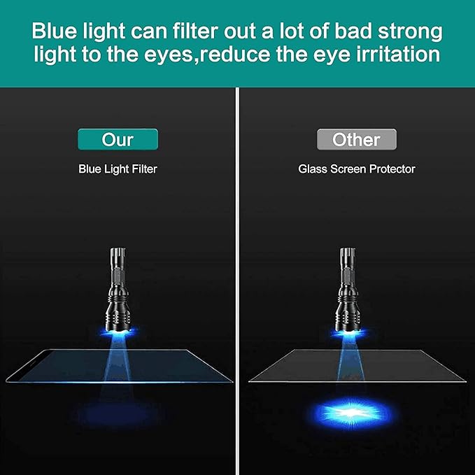 - Blue Light Blocking: Reduces eye strain and associated discomfort by reducing your exposure to UV and blue light. Our blue light blocking screen protector filters out up to 61% of blue light and up to 99% of UV light to help minimize eye fatigue.