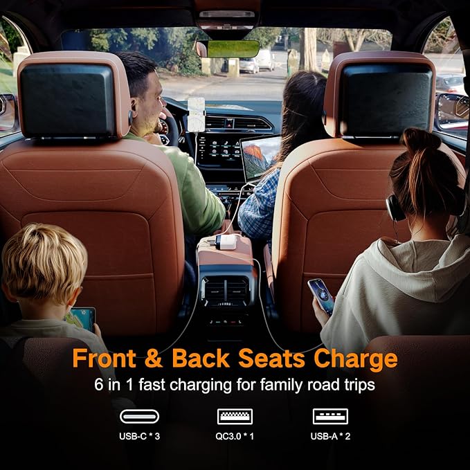 - 【Upgraded 125W 6-Ports Car Charger】BETSEK's upgraded car charger can meet your charging needs for multiple devices. This charger has 3 PD30W USB-C ports, 1QC3.0 18W port and 2 intelligent recognition 2.4A ports, enabling simultaneous 6 devices.