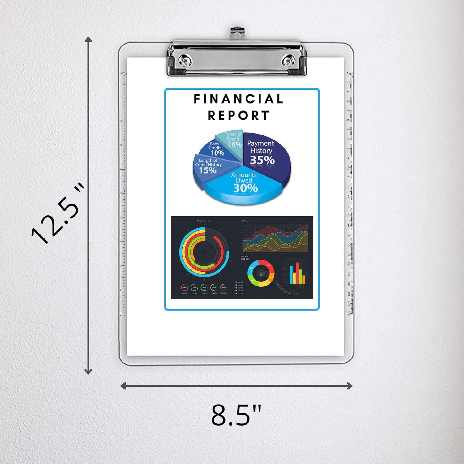 PERFORMORE Clear Acrylic Clipboards 6-Pack | 12” x 9” Letter-Size Writing Boards | Durable Transparent Plastic with Silver Low-Profile Clips | Ideal for Office, School, Events, and Seminars