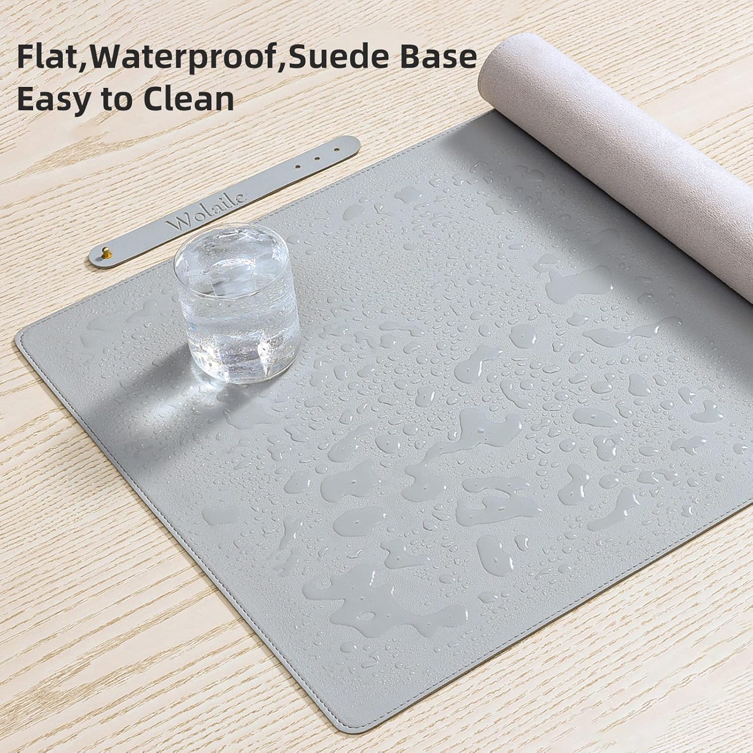 PU Leather Desk Pad Blotter,Light Grey Waterproof Office Desktop Mat,36x17in Non-Slip Large Mouse Pad/Writing Protector/Desk Accessories