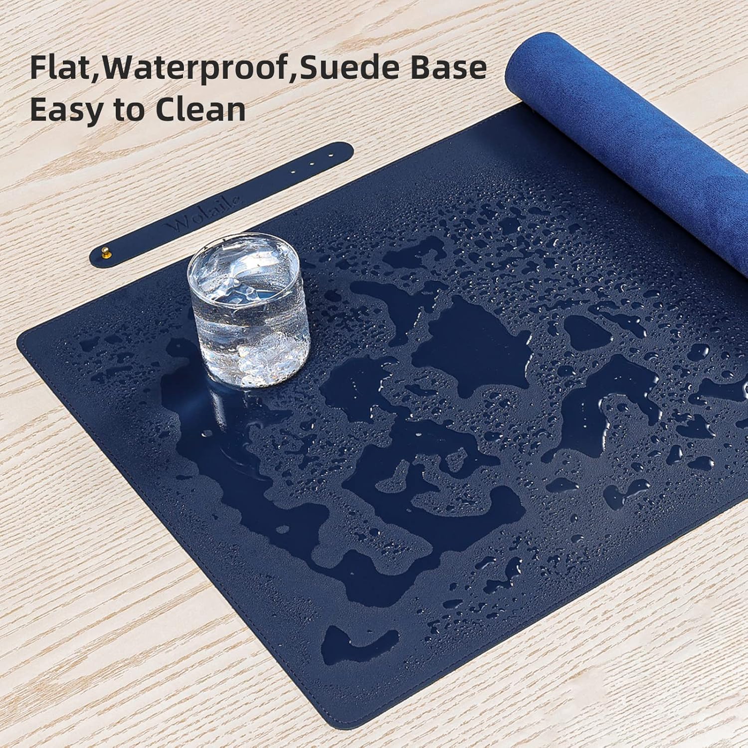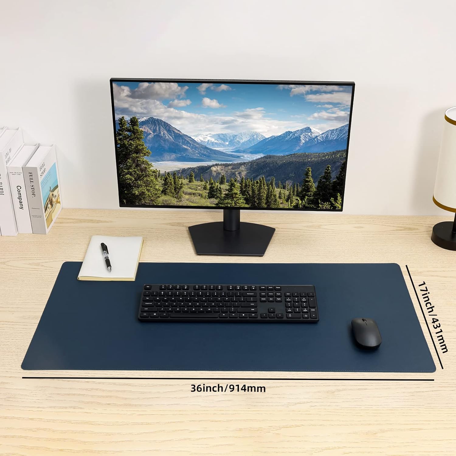 PU Leather Desk Pad Blotter,Navy Waterproof Office Desktop Mat for Men,36x17in Non-Slip Large Mouse Pad/Writing Protector/Desk Accessories