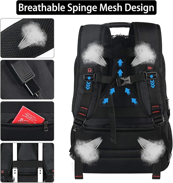 17.3 Laptop Backpack for Men Women, Extra Large Travel laptop Backpack with Rain Cover, TSA Friendly Flight Approved with RFID Anti Theft Pocket and USB Charger Port, Water Resistant School BookBag