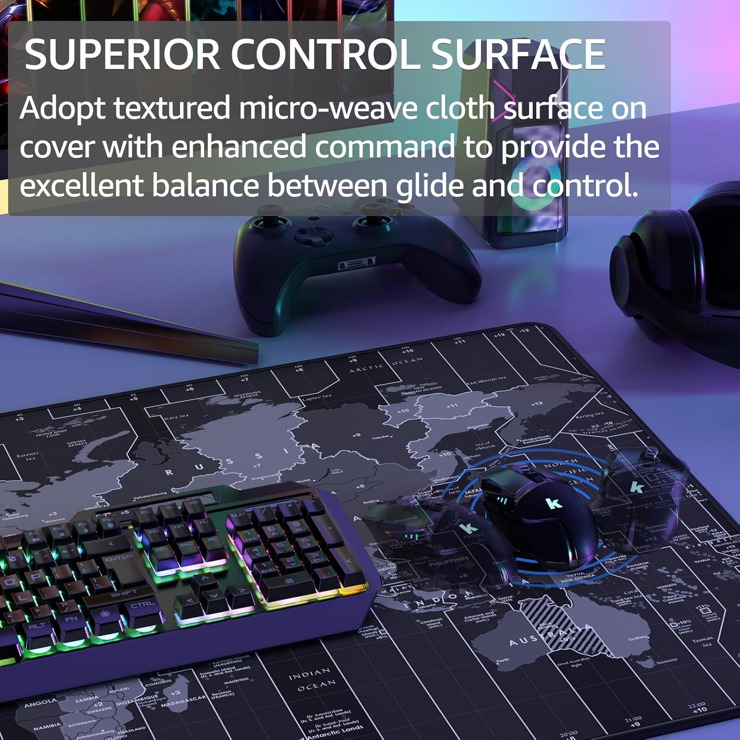 KTRIO Large Gaming Mouse Pad with Stitched Edges, Extended Mousepad with Superior Micro-Weave Cloth, Non-Slip Base, Water Resist Keyboard Pad, Desk Mat for Gamer, Office & Home, 31.5x15.7in, World Map