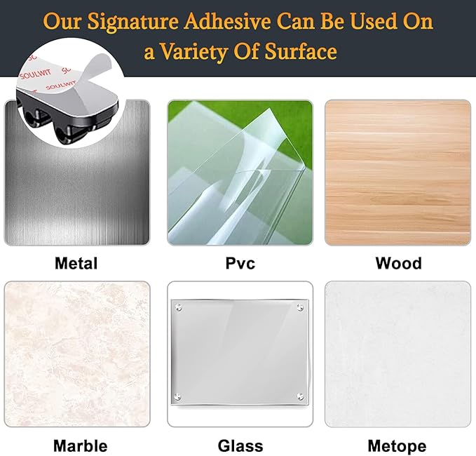 - 🔷The double-faced adhesive is very firm and long-lasting and works well in smooth and clean the surface, such as marble, plastic, wood, glass, metal, and rubber.