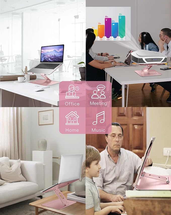 Laptop Stand | Adjustable Aluminum MacBook Riser, Ergonomic Computer Stand with Heat Vent, Fits 10–17" Laptops, Rose Gold