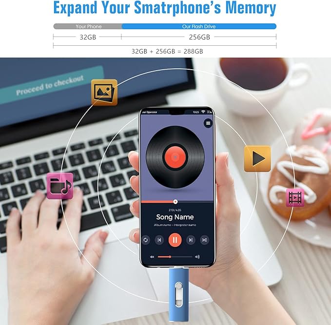 - Dual Connectors: The 256GB Flash Drive with the USB 3.1 & type-C connectors, work on the OTG-enabled tablets & USB C Smartphones, Just connect the USB flash drive , easily move photos, videos and other files off your phone/computer and onto the flash drive