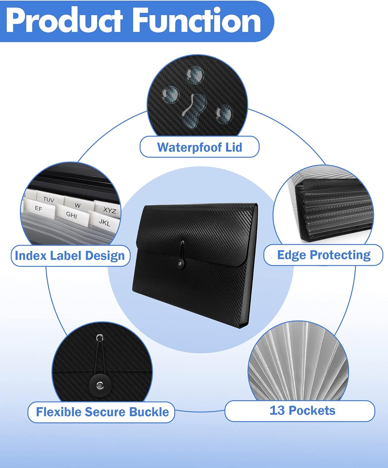 - What You Get : 1x Black 13-pocket Expanding File Folders, Size: 33 * 24 * 3.5 cm, which can store letters, A4 paper, documents, invoices, contracts and regular US papers, The document paper folder is easy to carry, can be put in your backpack, briefcase etc