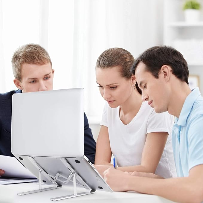 Laptop Stand, Laptop Riser Computer Stand for Desk, Adjustable Aluminum Foldable Portable Desktop Holder, Compatible with MacBook Air pro, iPad, Lenovo, 10-15.6” Laptop and Tablets (Silver)
