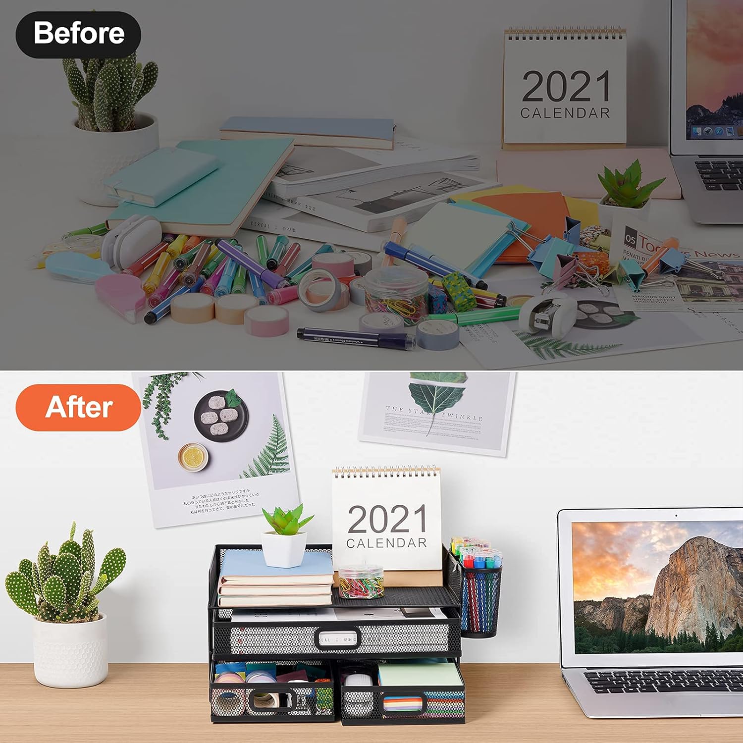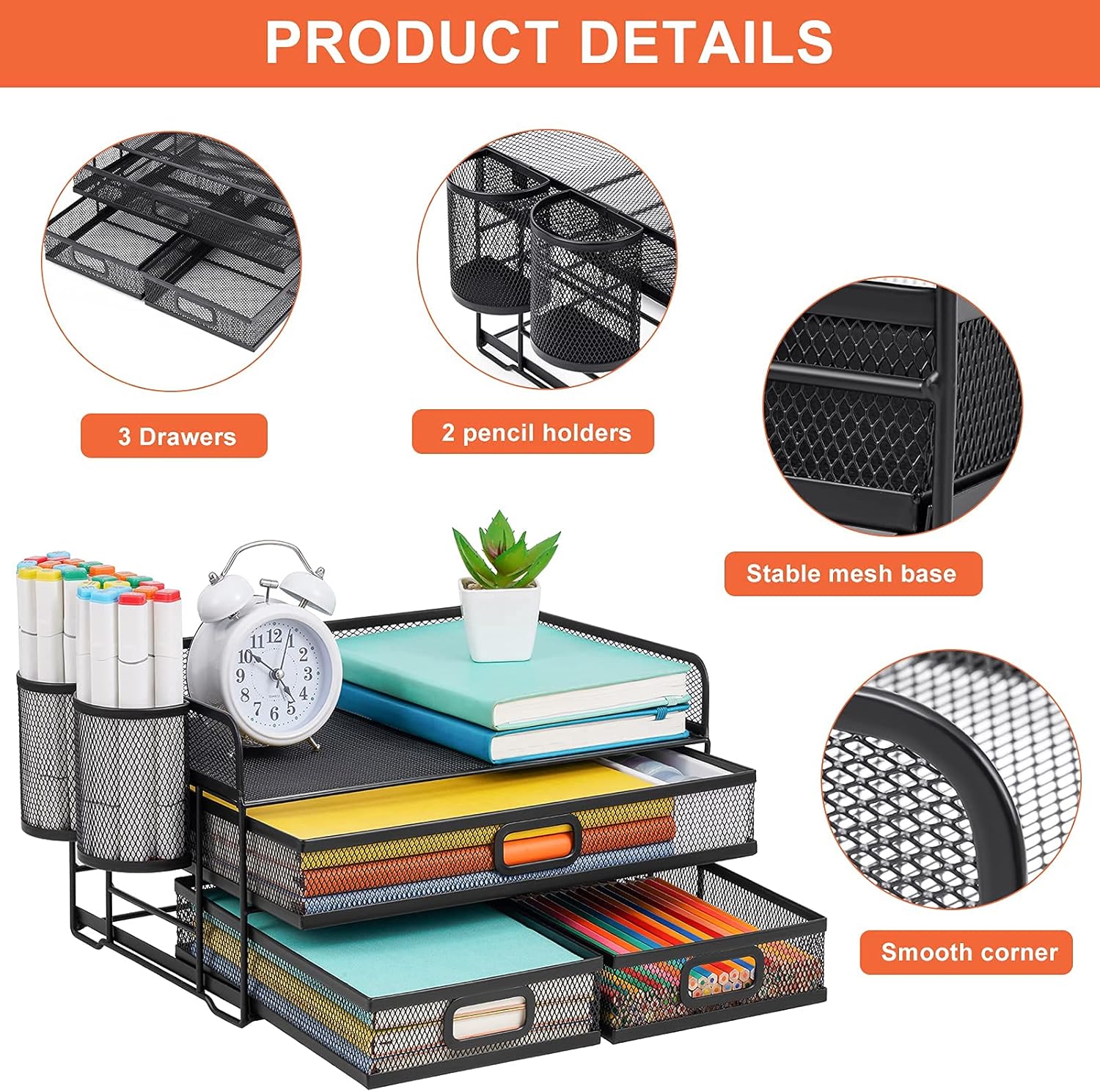 - ćConvenient Personal StoragećCompared with other mesh desktop organizer. The Multi-drawer design can help you store some important papers, whether it is personal letters or personal information can provide you with a certain privacy protection space.