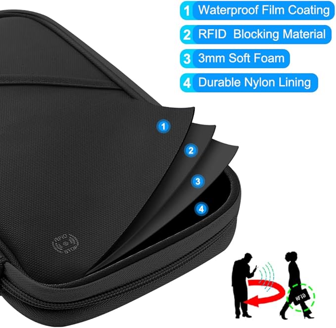 - 【RFID BLOCKING】The RFID blocking technology could effectively protect your card from being scanned. Built-in material safeguards your personal information, such as ID card, Driver's License, Credit/Debit card. The RFID travel passport wallet will meet all your travel needs, which is a great ideal for women and men. Perfect fit for traveling, home, camping, business trip.
