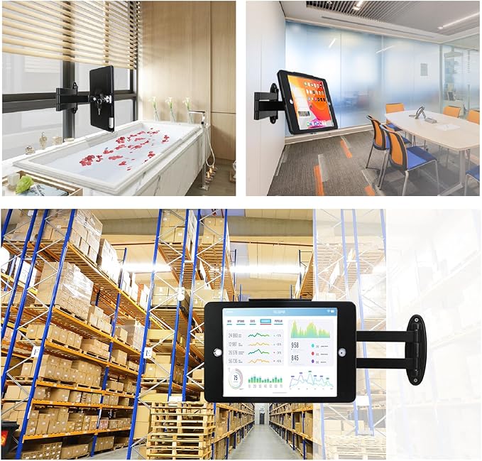 - Easy Mounting and Installation : tablet holder is easy to install on any wall and comes with mounting hardware included. Heavy-duty aluminum bracket and metal base ensure durability and wobble-free mounting of your device. Protective pad on the bracket cushion your device.
