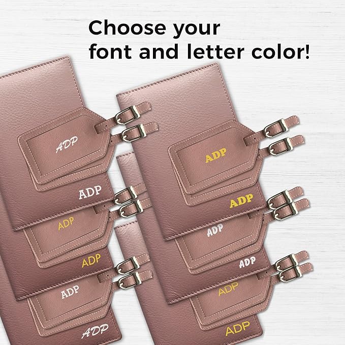 - Genuine leather passport wallet and two luggage tags in matching colors