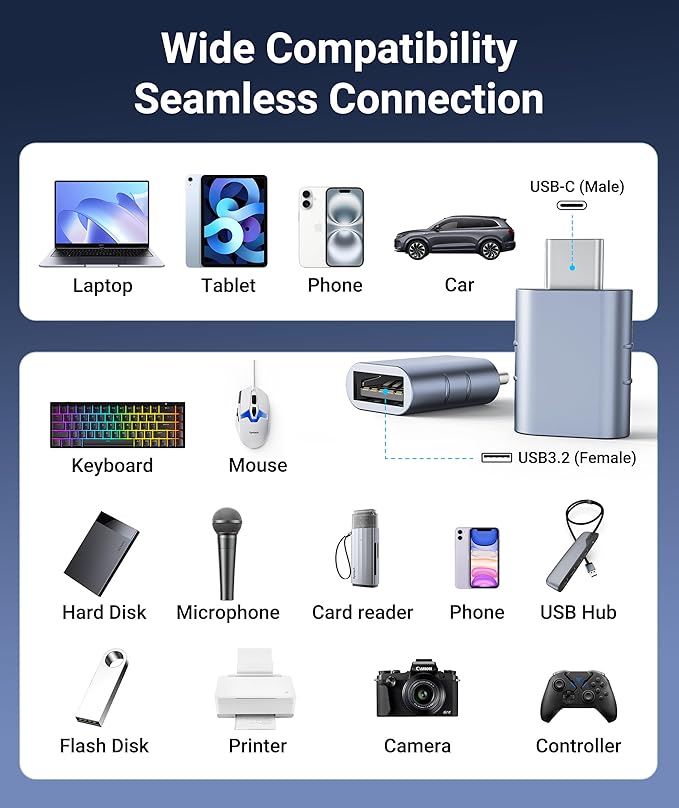 - Compatibility: This USB C to USB adapter is compatible with iPhone 17/Air/17 Pro/17 Pro Max and MacBook Pro after 2016 and MacBook Air after 2018 and most of the laptops, tablets and smartphones with a USB Type C port