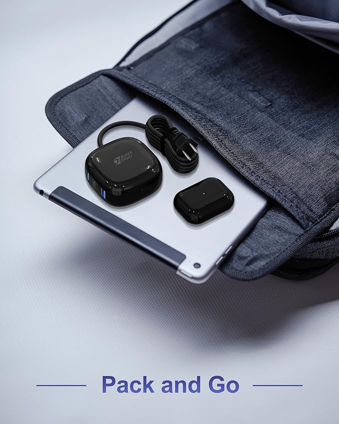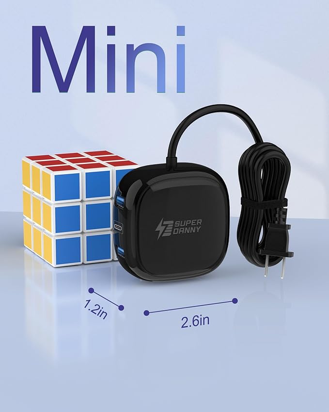 SUPERDANNY 6-Port USB Charger 8A, 40W Mini USB Charging Station, Charging Station for Multiple Devices, 4ft Cable, Compatible with iPhone, iPad, Galaxy, Pixel, for Travel, Cruise, Black