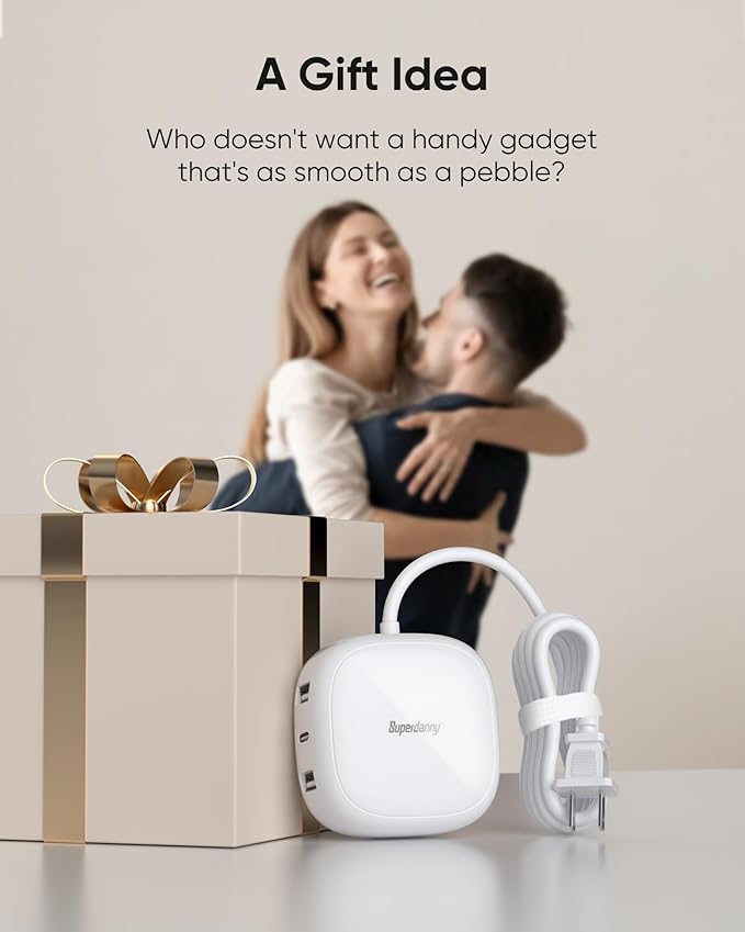 SUPERDANNY 6-Port USB Charger, 40W 8A Mini USB Charging Station, Charging Station for Multiple Devices, 4ft Cable, Compatible with iPhone, iPad, Galaxy, Pixel, for Travel, Cruise, White