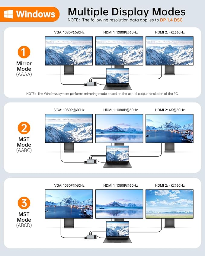 - Docking Station Dual Monitor: Dell docking station will help you easily achieve dual-monitor and triple-monitor display, making your work/life more efficient;( Triple Display 2 HDMI 4KVGA 1080P) β Please Note Before Purchase: Only the built-in usb c port of your laptop is the fully functional port, you can use the dual/triple monitor function if you are not sure, please send the laptop model and we will help you to check if this docking station is compatible for your device